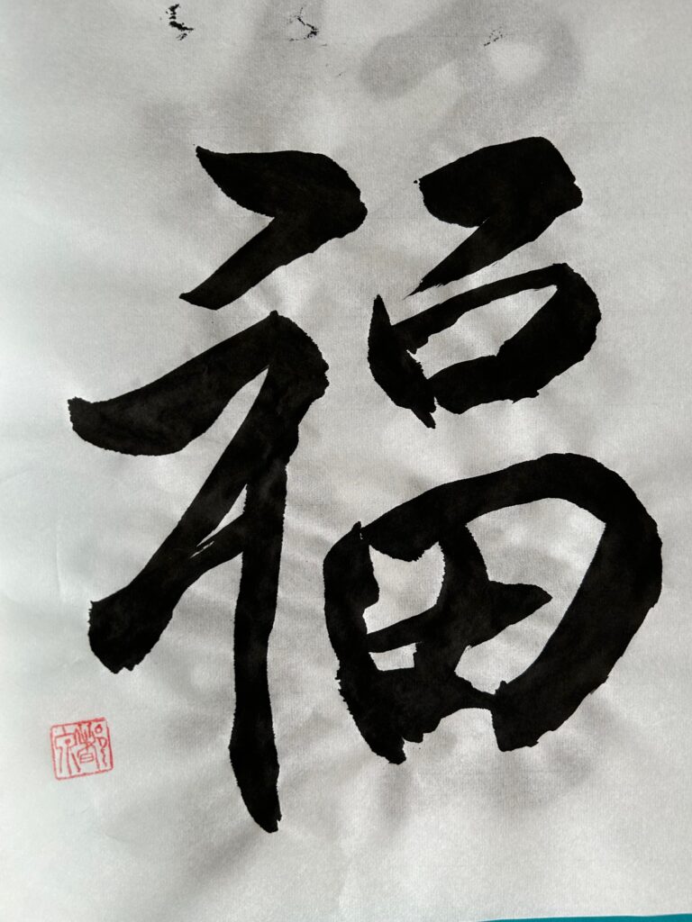 そして最後に落款印を押して完成です。個性豊かな字が、毎月玄関に飾られています。正木の家に来た際は、是非見てみてください。